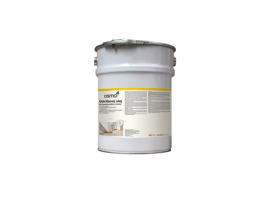 Osmo Údržbový olej zajišťuje hloubkovou péči i běžnou údržbu olejovaných podlah. Zašlé a matné podlahy Osmo Údržbový olej oživí. Při včasném použití Osmo Údržbového oleje (neošetřené dřevo nesmí být vystaveno okolním vlivům) zabráníte pracnému broušení a nutnosti provádět renovační nátěry. Je určený pro všechny olejované dřevěné podlahy jako jsou podlahy z masivního dřeva, masivní prkna, parkety, palubky, OSB desky a korkové podlahy stejně jako pro schodiště a nábytek. Zvláště doporučeno pro použití u silně namáhaných podlah (restaurace, muzea a další typy silně namáhaných podlah).Doplňkové parametry