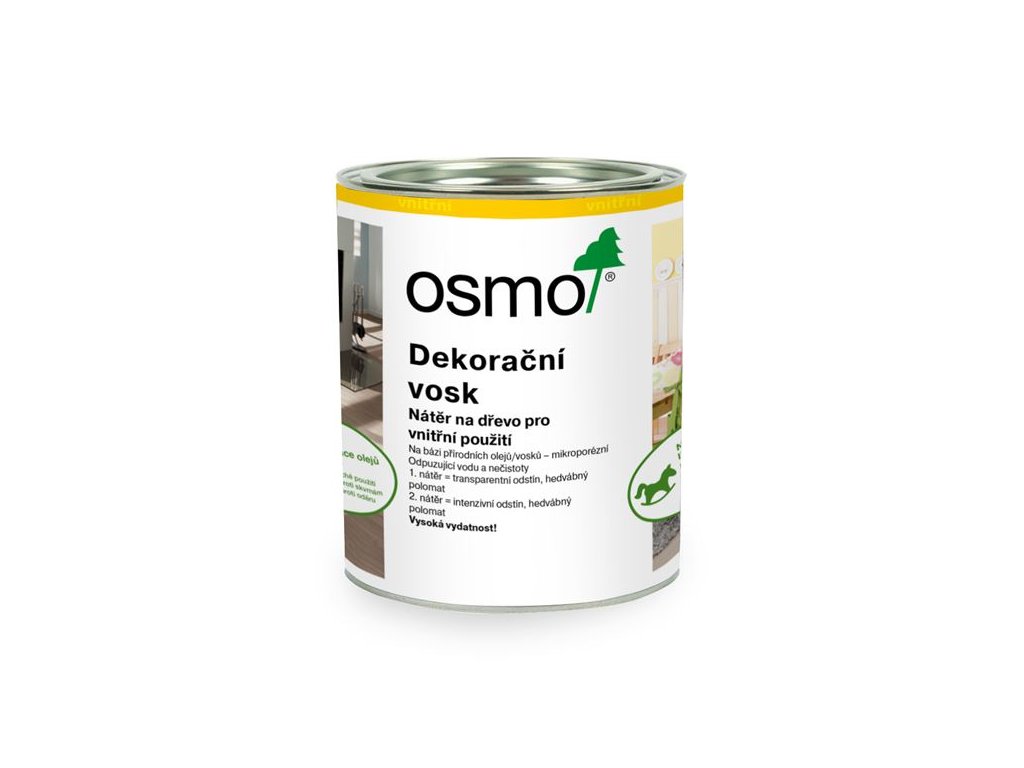 Transparentní a intenzivně zbarvené provedení – všestranný talent pro dřevo ve vnitřních prostorách! Transparentně zbarvený nebo intenzivně zbarvený, polomatný nebo matný, k použití uvnitř Obzvláště se doporučuje na nábytek a dětské hračky, podlahy (U podlah se doporučuje konečný nátěr Tvrdým voskovým olejem), stěny, stropy, dveře, lišty, trámy a lepené dřevo. Dekorační vosk vytvoří povrch odpuzující vodu a nečistoty – je odolný při stírání na vlhko a rovněž je odolný vůči skvrnám. Počet nátěrů: Pro transparentní povrch jeden nátěr, pro intenzivně zbarvený povrch naneste dva nátěry. 1 litr stačí při jednom nátěru na cca 24 m2Doplňkové parametry