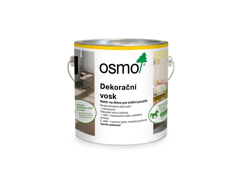 Transparentní a intenzivně zbarvené provedení – všestranný talent pro dřevo ve vnitřních prostorách! Transparentně zbarvený nebo intenzivně zbarvený, polomatný nebo matný, k použití uvnitř Obzvláště se doporučuje na nábytek a dětské hračky, podlahy (U podlah se doporučuje konečný nátěr Tvrdým voskovým olejem), stěny, stropy, dveře, lišty, trámy a lepené dřevo. Dekorační vosk vytvoří povrch odpuzující vodu a nečistoty – je odolný při stírání na vlhko a rovněž je odolný vůči skvrnám. Počet nátěrů: Pro transparentní povrch jeden nátěr, pro intenzivně zbarvený povrch naneste dva nátěry. 1 litr stačí při jednom nátěru na cca 24 m2Doplňkové parametry