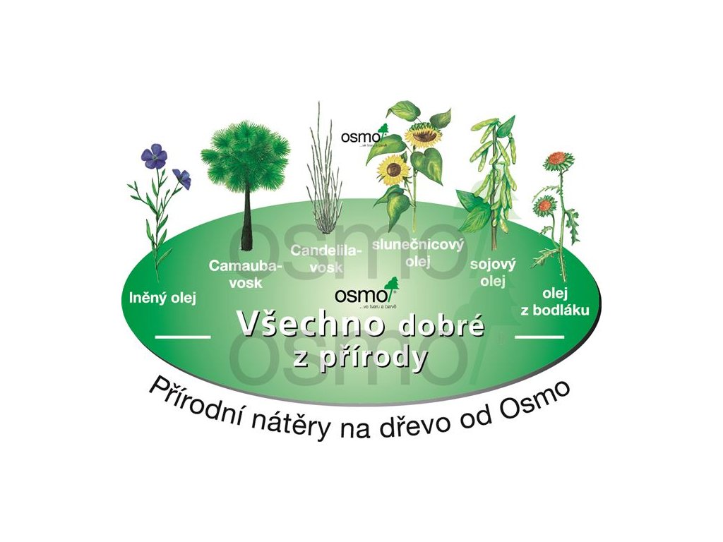 Osmo Barevný olej je vysoce kvalitní barevný pigmentový základ bez obsahu rozpouštědel pro profesionální kladeče podlah, vhodný pro všechny dřevěné podlahy z tuzemského dřeva (prkna z masivního dřeva, selská prkna a palubkové podlahy) podle DIN 18356. Bezbarvá konečná úprava se provede Osmo Tvrdým voskovým olejem Pure. Hotový povrch se vyznačuje zvláštní tvrdostí povrchu a odolností proti ošlapání. Odpuzuje vodu a je nenáchylný k zašpinění. Skvrny lze odstranit snadno a beze stop. Dodatečnou úpravu jednotlivých silně zatěžovaných a poškozených míst bez znatelných okrajů lze provést pouze jednoduchým očištěním a přetřením. Žádné celoplošné obrušování a přepracování celé plochy. Osmo Barevný olej je založen na bázi přírodních rostlinných olejů a vosků. Povrch má otevřené póry, neodprýskává ani nepraská nebo se neodlupuje. Proto se také hodí obzvláště dobře k použití ve vlhkých prostorách jako kuchyň a koupelna. Odolný vůči vínu, pivu, kole, kávě, čaji, ovocným šťávám, mléku a vodě, vyhovuje požadavkům normy DIN 68861-1A, nezanechává stopy po vodě. Na bázi přírodního oleje - vosku Osmo Barevný olej je založen na bázi přírodních rostlinných olejů a vosků. Přírodní oleje a vosky pronikají hluboko do dřeva. Uchovají ho zdravé a elastické a nenechají ho vyschnout. Dřevo může dýchat. Vlhkost může unikat. Bobtnání a smršťování dřeva je omezeno. Oblasti použití - dřevěné podlahy ve vnitřních prostorách. Pro tvrdé dřevo jako wengé, meranti, merbau, jatoba atd. je třeba upřednostnit úpravu Osmo Čistým voskem (provést zkušební nános!). Další informaci získejte v technickém listu výrobku. VÝPRODEJ POSLEDNÍCH KUSŮ SKLADEM BEZ MOŽNOSTI DOOBJEDNÁNÍ! NA VŠECHNY OSMO BAREVNÉ OLEJE JE NASAZENA SLEVA 50%!Doplňkové parametry
