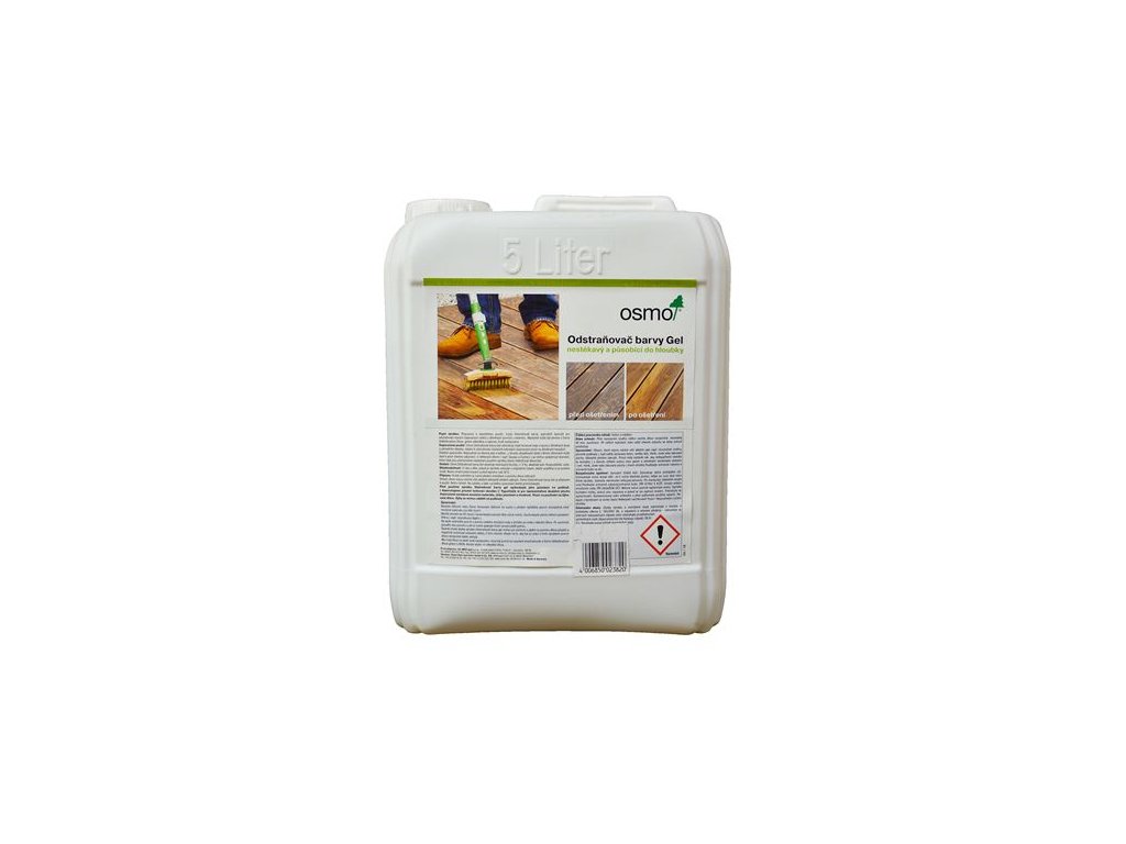 Ucelené a efektivní odstranění starých terasových olejů a lazur. Viskózní odstraňovač barev připravený k okamžitému použití a určený k odstraňování starých olejových nátěrů v exteriérech. Následně je možno povrch ošetřit přípravkem Osmo Odšeďovač dřeva - gel a znovu natřít olejovým nátěrem. Osmo Odstraňovač barvy- gel odstraňuje staré terasové oleje a lazury z dřevěných teras a dřevěného zahradního nábytku. Ideální k odstraňování olejové vrstvy z částečně zvětralých dřevěných teras, aby bylo dosaženo jednotného vzhledu bez olejového povlaku. 1 l postačí při jedné aplikaci pro přibližně 5 m2Doplňkové parametry