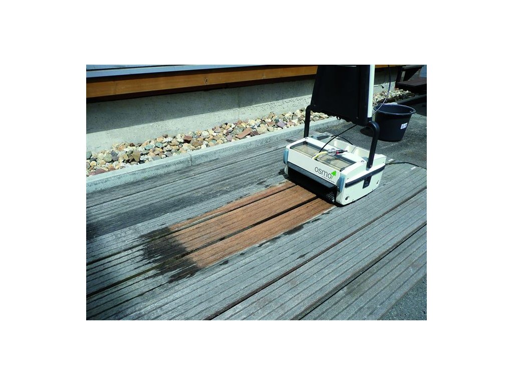 OBLASTI POUŽITÍ Osmo stroj k čištění dřevěných teras a podlah je vhodný pro oblast uvnitř a venku k uvolnění a pohlcení znečištění v jednom pracovním kroku. Ideální k intenzivnímu důkladnému čištění a odšedění dřevěných teras a k čištění do hloubky u dřevěných podlah v oblasti uvnitř. VÝHODY Vhodný k čištění v oblasti uvnitř a venku Intenzivní důkladné čištění a odšedění dřevěných teras Čištění do hloubky u dřevěných podlah v oblasti uvnitř Zvláště efektivní díky protichůdně rotujícím kartáčům Uvolnění a pohlcení znečištění v jednom čistém pracovním kroku Znečištěná voda je zachycována do nádrže Stroj si lze zakoupit popř.vypůjčit u odborného prodejce.