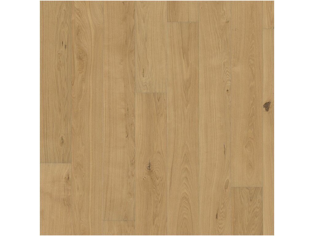 Dřevěná podlaha Dub CD z kolekce Piazza přináší sofistikovaný vzhled s jemnou kresbou dřeva a decentními suky. Povrchová úprava matným lakem zajišťuje ochranu proti každodennímu opotřebení a zároveň zachovává přirozený vzhled dřeva.