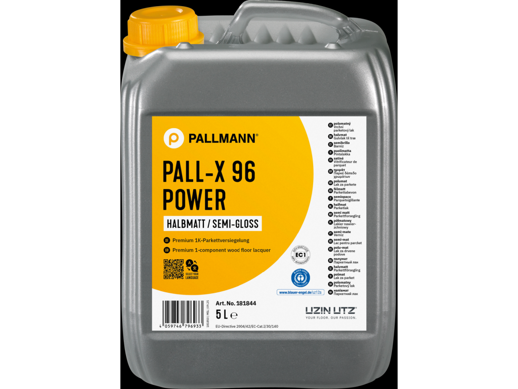 PALLMANN PALL-X 96 POWER je prémiový jednosložkový vrchní lak na vodní bázi, dimenzovaný pro silně až velmi silně namáhané dřevěné podlahy. Poskytuje nekompromisní ochranu před mechanickým opotřebením, oděrem i škrábanci a spolehlivě odolává běžným domácím chemikáliím. Díky rychlému schnutí a vynikajícímu rozlivu zajišťuje efektivní práci bez zbytečných prostojů. Lak splňuje nejvyšší ekologické a zdravotní standardy – má certifikaci pro styk s dětskými hračkami, odolává slinám i potu a vykazuje extrémně nízké emise.